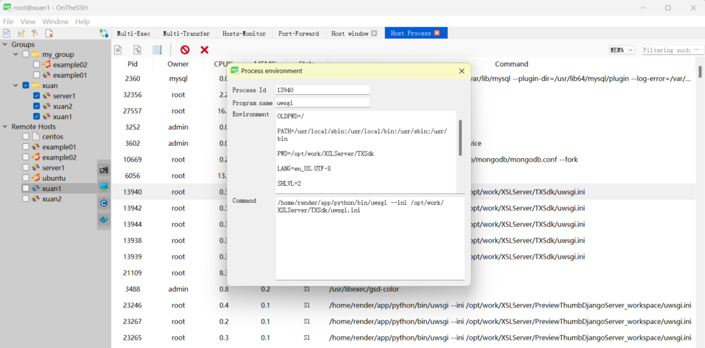 使用图形化窗口管理远程主机上的文件、用户和用户组。也是文件传输、文件分割传输的入口。